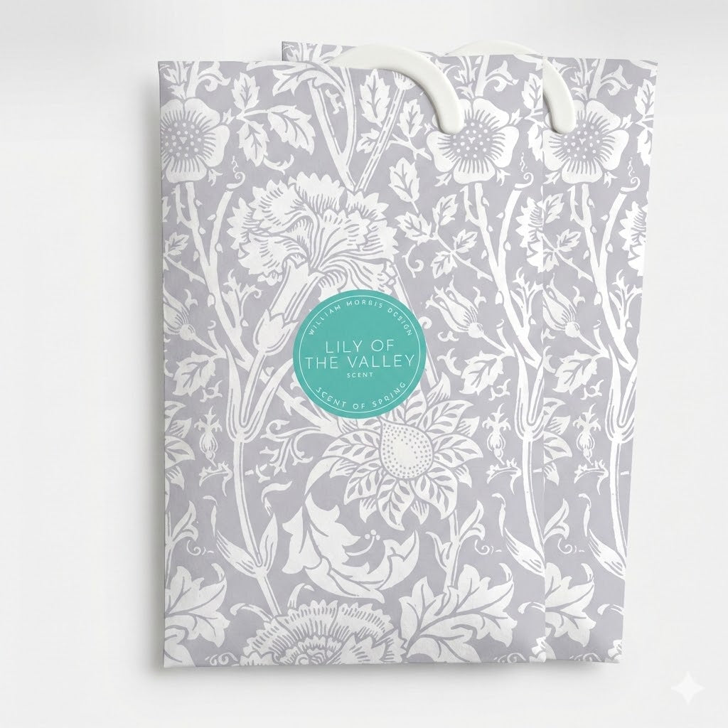 LILY OF THE VALLEY Scented Wardrobe Freshener in a WILLIAM MORRIS Design in GREY | Pack of 2